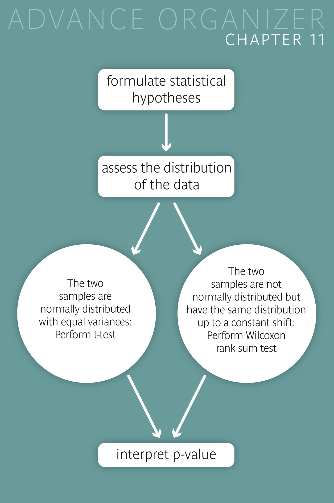 Figure 11.6 gives an overview of the different testing situations and the criteria which have to be considered in the choice of a statistical test. Some of these situations were treated in the present chapter and in chapter 10. Others will be treated in chapter 12.